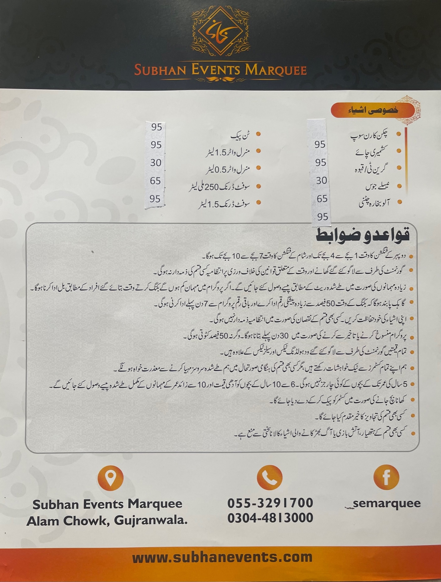 Name of Subhan Events Marquee has direct inspiration from the Holy Name of Allah (Subhan me...